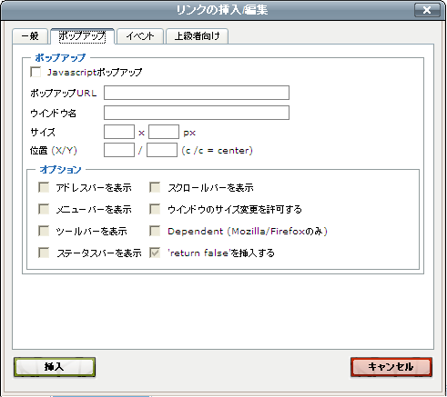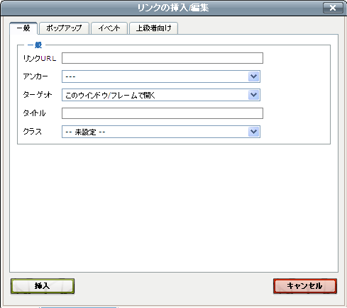 リンクの挿入 / 編集ウィンドウでは、挿入するリンクについて設定を行います。