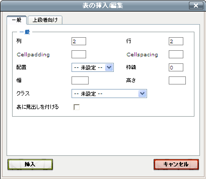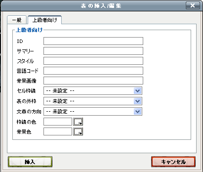 ◆キャンセル:操作が取り消され、表の挿入/編集ウィンドウを閉じます。