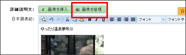 「画像の管理」ボタンをクリックすると画像管理ウインドウが表示されます。