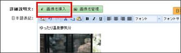 ◆挿入ボタン(新規登録の場合):表の挿入/編集ウィンドウで登録した内容を説明文の入力欄に挿入します。