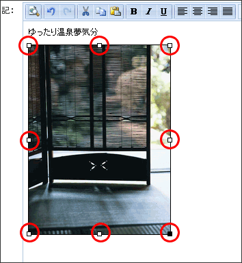 挿入した画像をクリックすると画像の縁部分に白い四角が表示されますのでドラッグしてサイズを