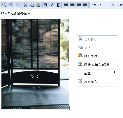 編集欄で右クリックするとコンテキストメニューを表示します。