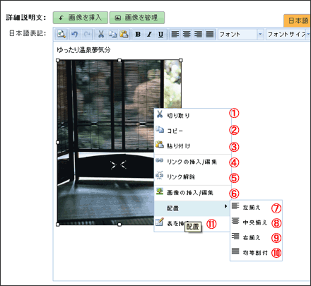 MicroSoftワードと同じ感覚で説明文を編集できる機能です。