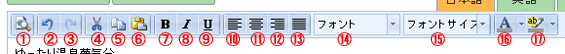 ⑮フォントサイズ : 文字の大きさを指定できます。